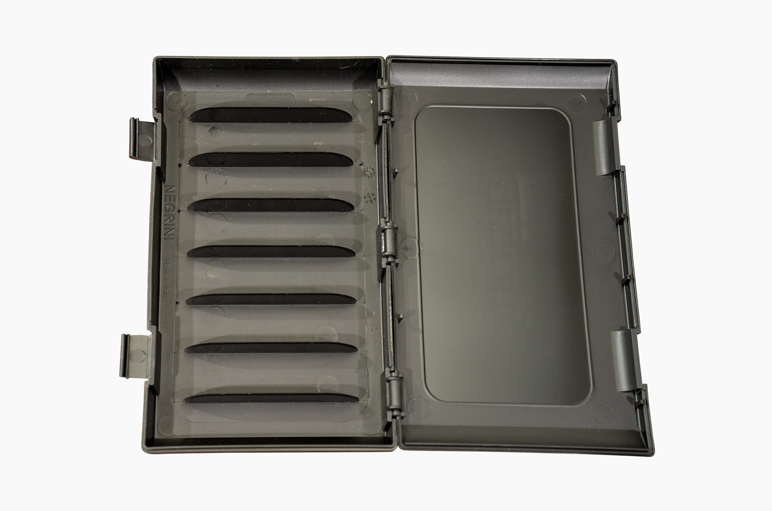 Negrini 5033-8 shotgun choke tube case storage. The 5033-8 fits eight (8x) extended choke tubes. Made of high-quality injection-molded polypropylene. The extended choke tube case is secured with two durable snap enclosures. The max choke length is 3-7/8″. Fits most Negrini shotgun cases.