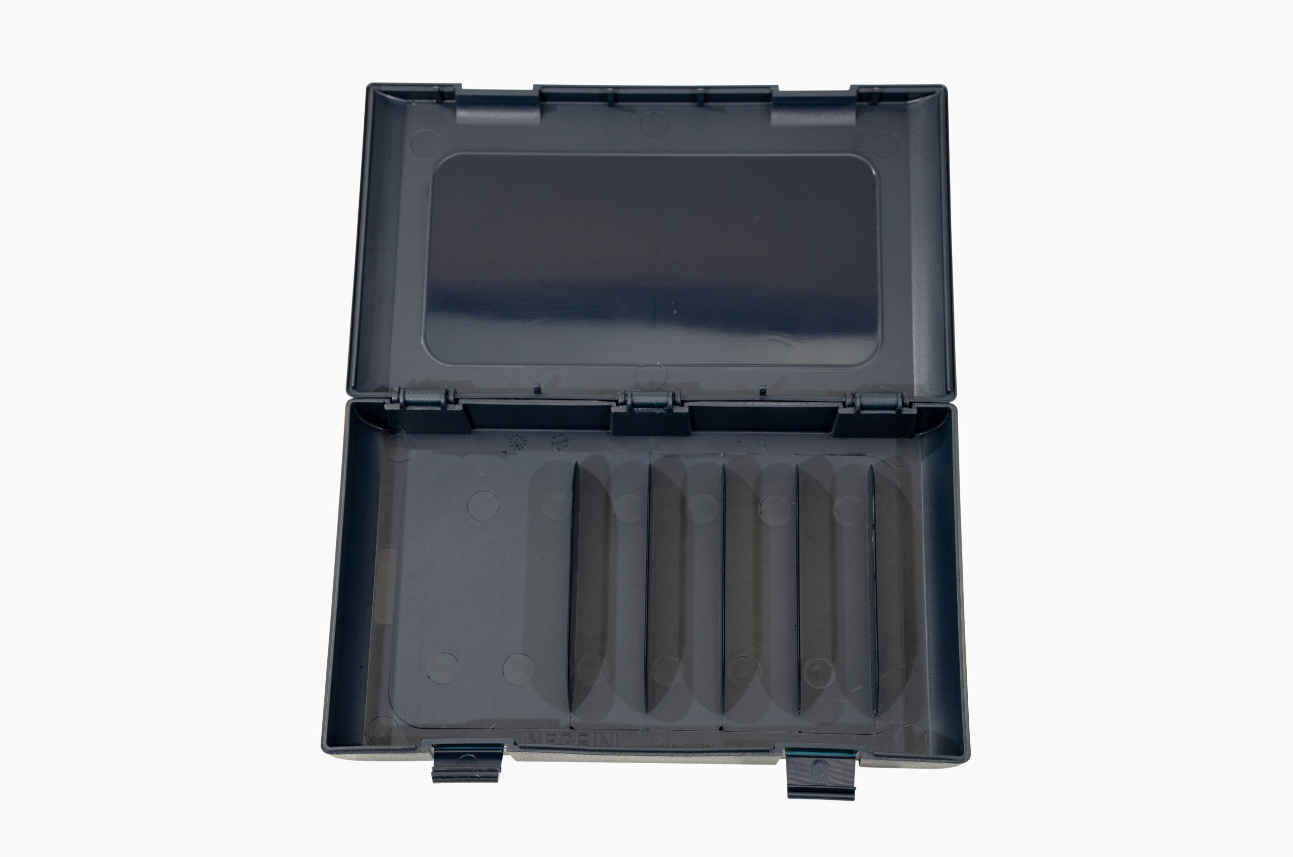 Negrini 5033-5 shotgun choke tube case storage. The 5033-5 fits five (5x) extended chokes plus a separate choke wrench compartment. Made with high-quality injection-molded polypropylene. This case for choke tubes is secured with two durable snap enclosures. The max choke tube length is 3-7/8″. Fits most Negrini shotgun cases (see below for compatible models).