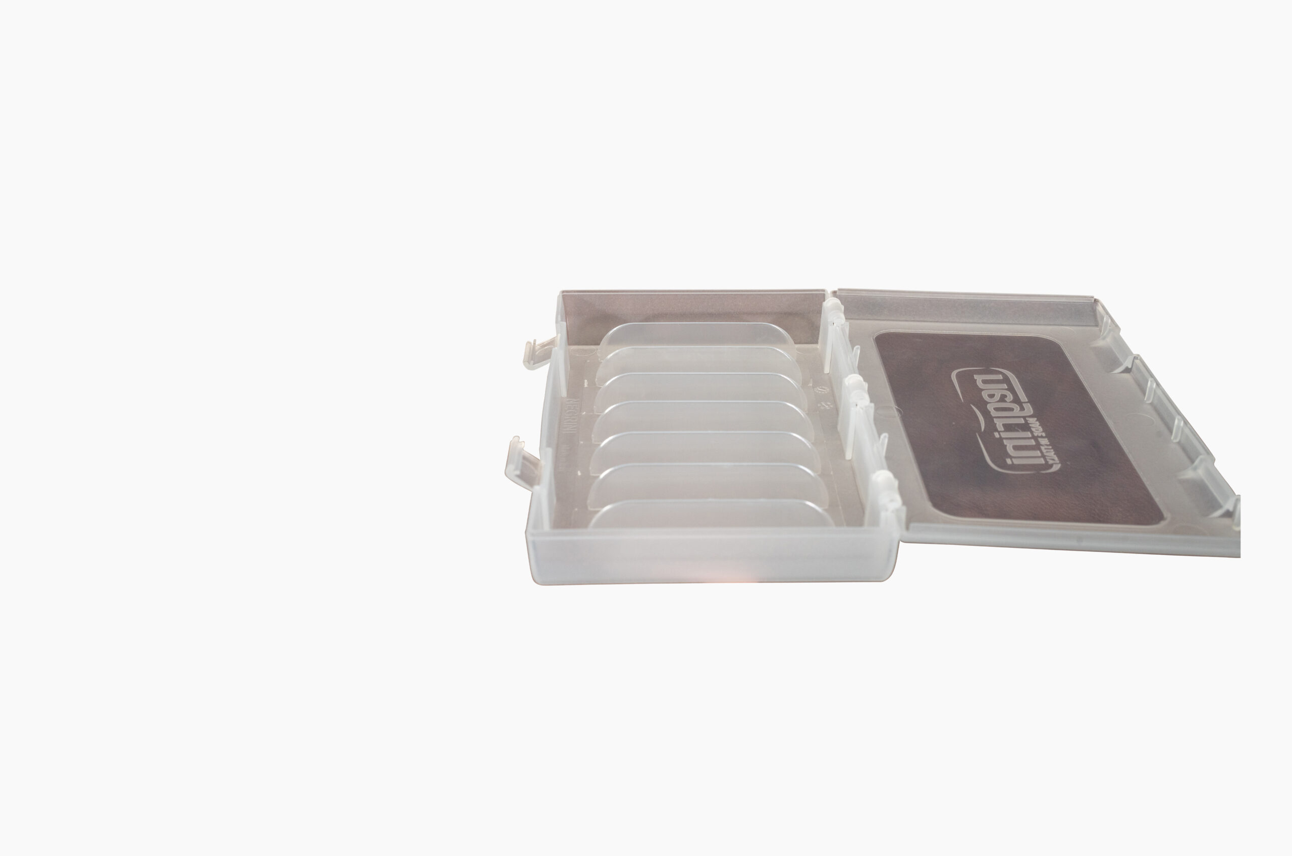 Negrini 5033-8 shotgun choke tube case storage. The 5033-8 fits eight (8x) extended choke tubes. Made of high-quality injection-molded polypropylene. The extended choke tube case is secured with two durable snap enclosures. The max choke length is 3-7/8″. Fits most Negrini shotgun cases.