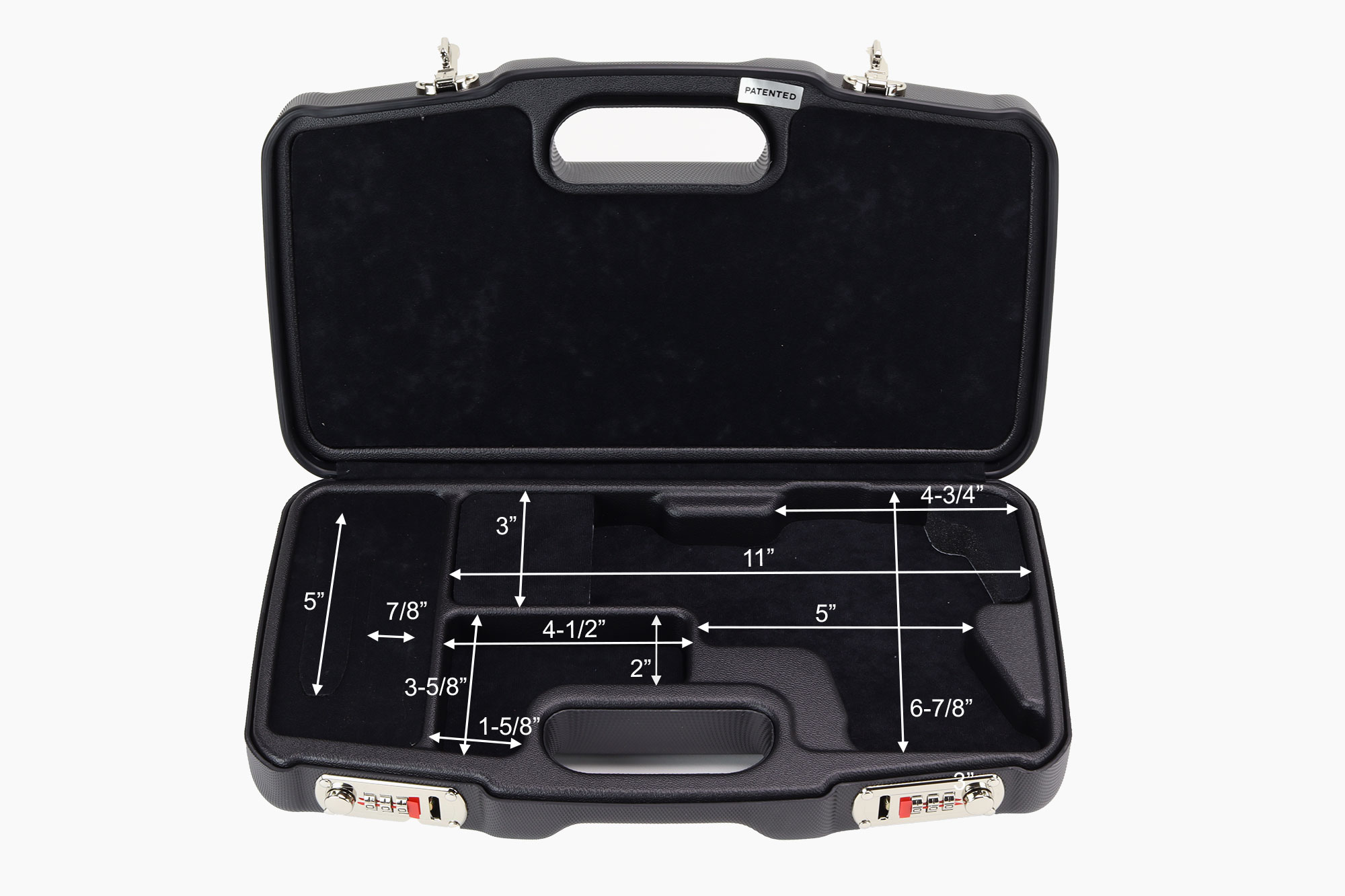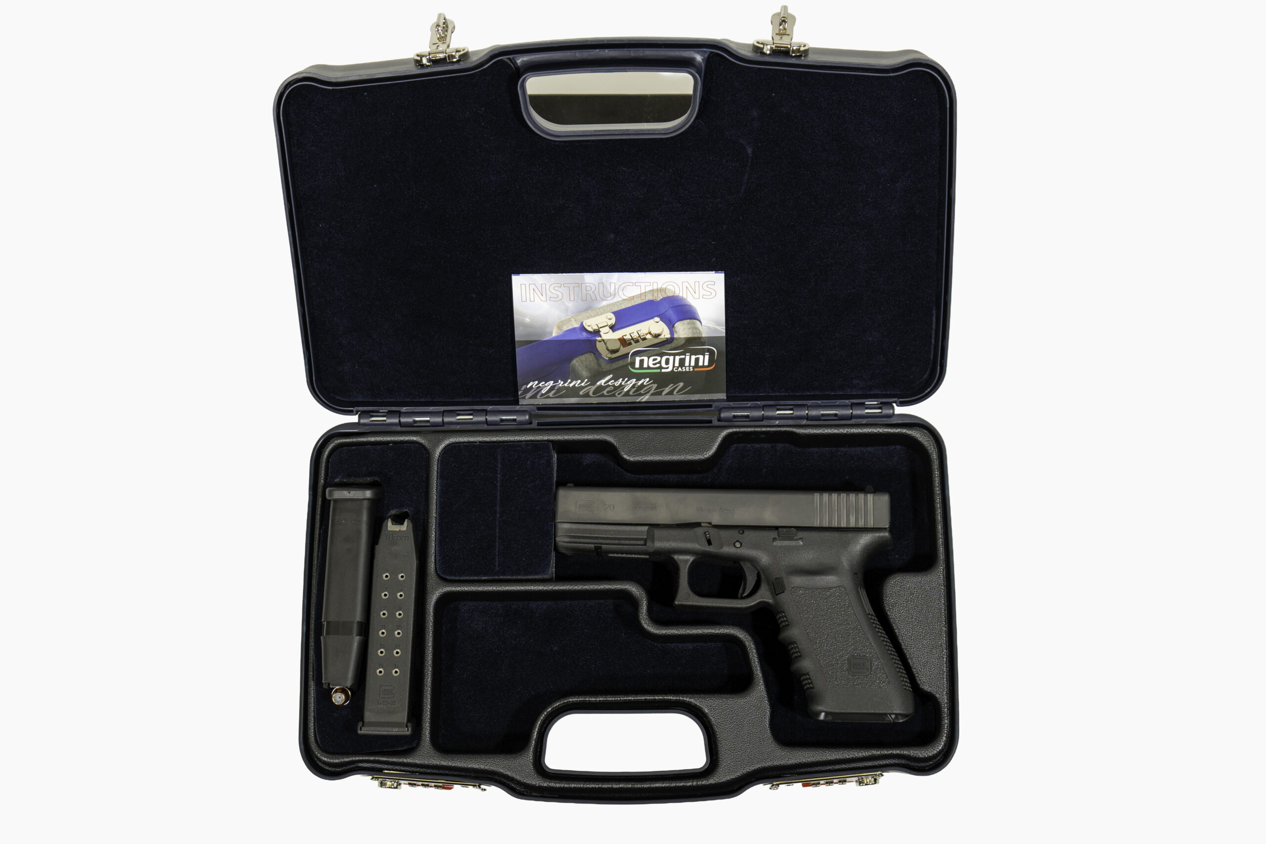This handgun travel case for air travel uses Negrini’s patented double-wall ABS construction for high strength coupled with a sleek Italian design. Each case has two travel secure steel combination locks for security and a limited lifetime warranty.