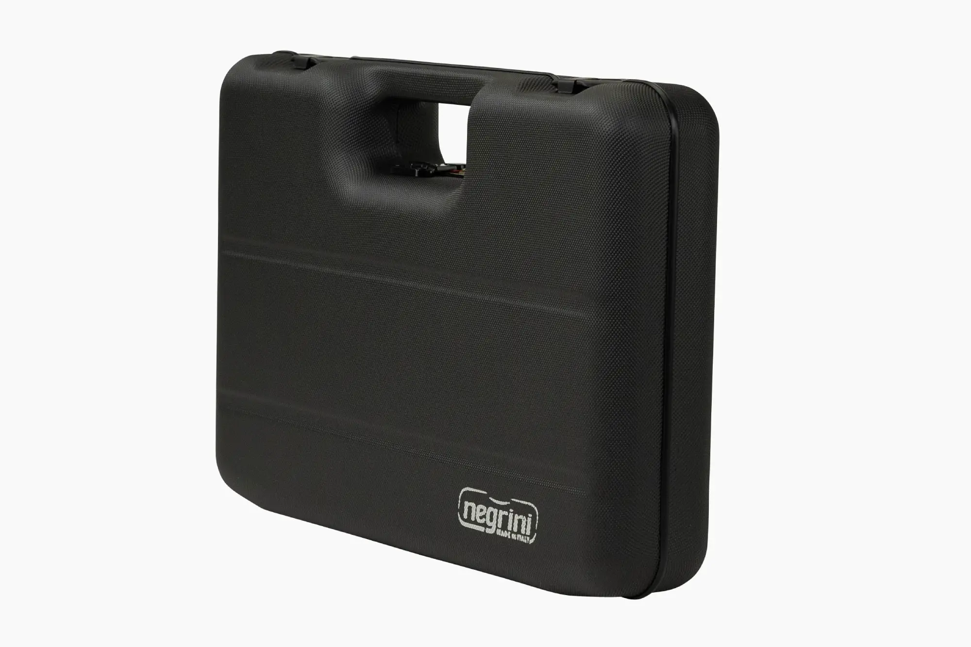 The Negrini 2023UR-TAC/4839 is still as compact as a 2018R-TAC/4835 Compact Handgun Case but with a little bit more room. This double-wall ABS case is lightweight and approved for airline travel internationally. Customize the interior with the easy-to-cut solid foam. The interior is upholstered with velvet for added luxury. The case is secured with a combination steel lock with two latches. Additional Inserts Available. Limited Lifetime Warranty.