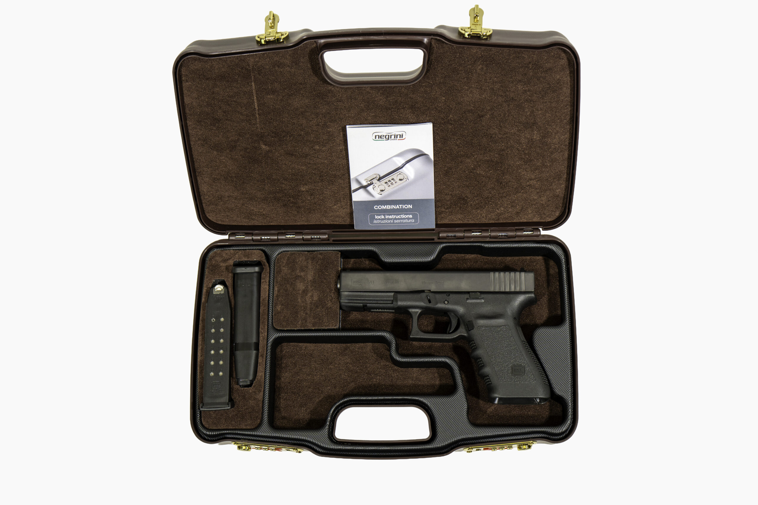 100% Made in Italy, Negrini hybrid case technology adds strength, function, and luxury to the injection molded case. Brilliant Italian design is combined with an ultra-strong thermoformed ABS interior, fully cushioned and upholstered with plush velvet. Each RMR red dot handgun case interior is designed with a padded bottom and top, and separate compartments for guns, ammo, and accessories. Each hard handgun case is fitted with hardened steel German combination locks. The locks are recessed with a low profile to prevent snagging while traveling. All case materials used are certified to not outgas or corrode firearms.