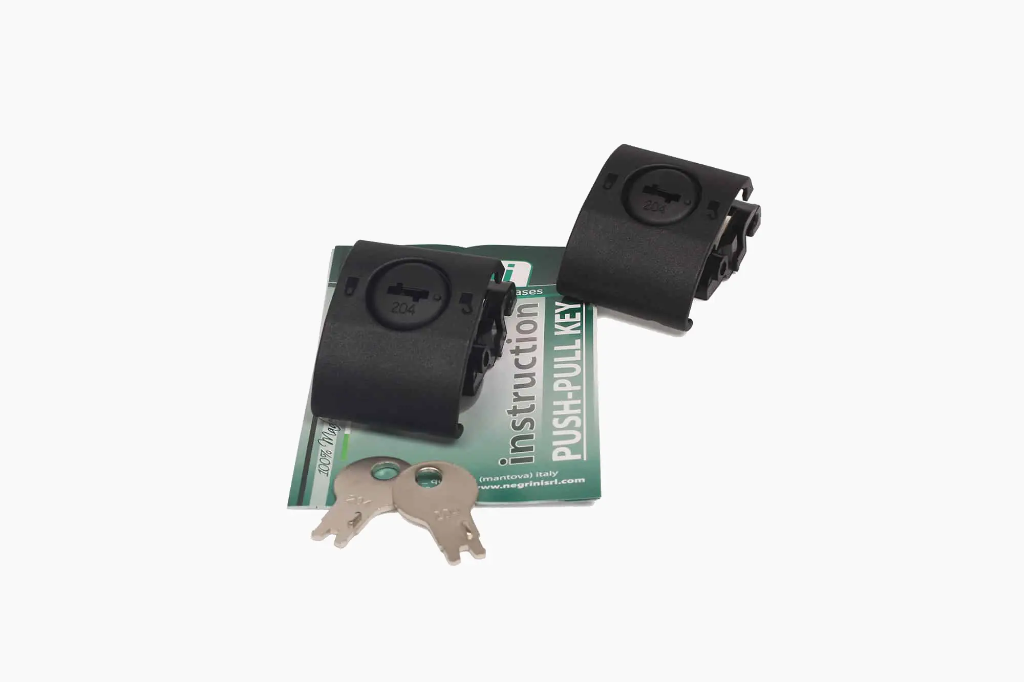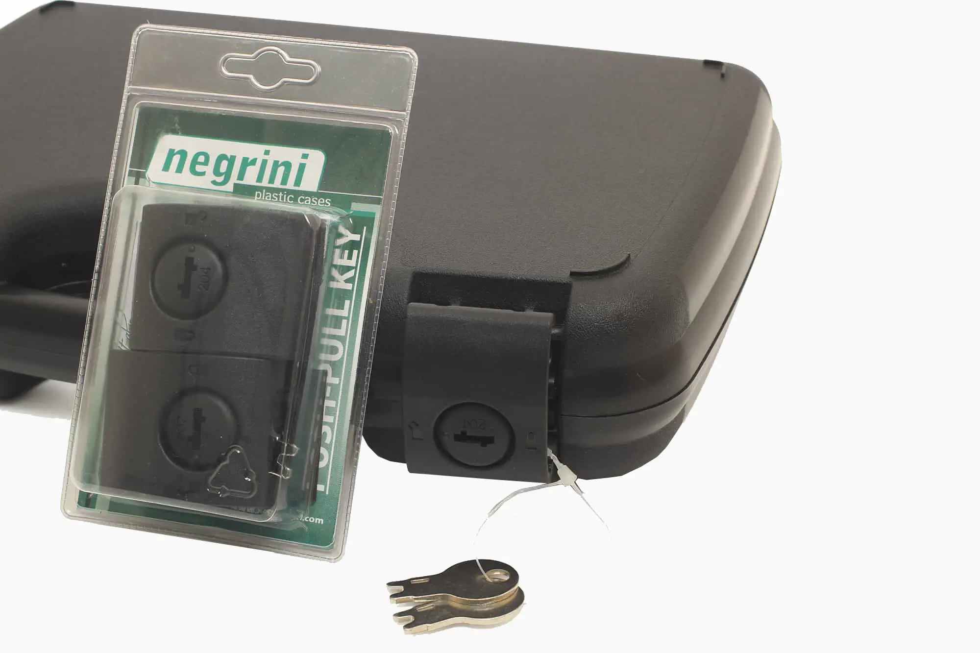 Replacement keyed lock for Push-Pull style latch. Referred to as MOD Blister. This Push-Pull Key Lockset will fit MOD 1601 (ISY, NB, TB, T), 1661 (ISY, NB, TB, T) shotgun cases and 2033 ISY, 2040 ISY, 2002 ISY, 2003 ISY handgun cases.
