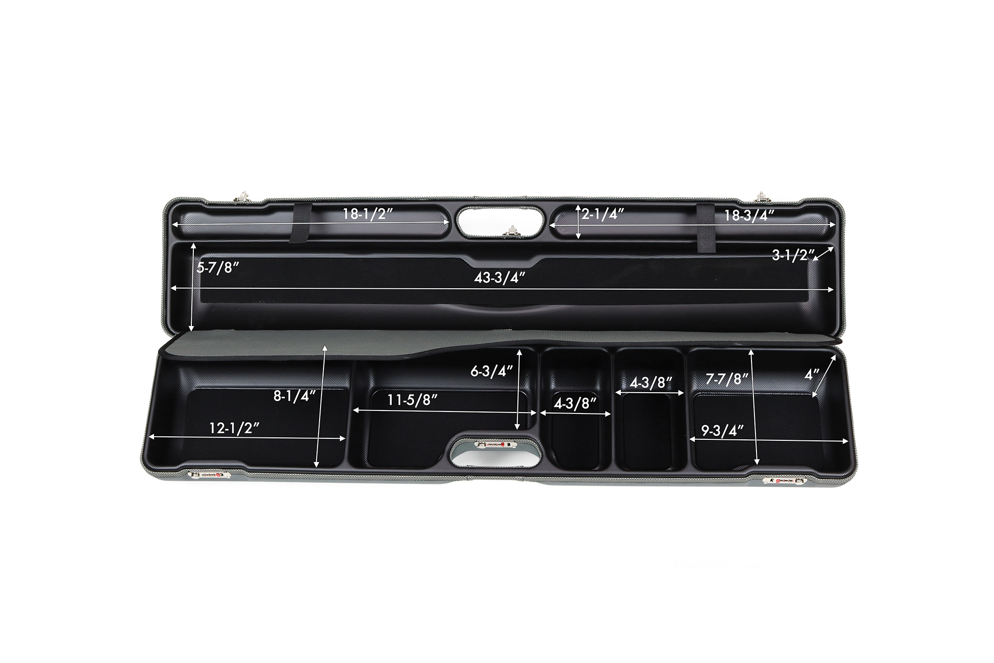 | Case dimensions exterior | L45” x W9.625” x D7.9” |